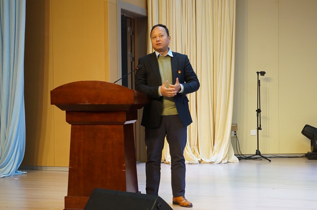 高永东副书记致辞。他向宣讲团的成立表示最热烈的祝贺,向为宣讲团筹备付出辛勤努力的师生们致以最诚挚的感谢。他对宣讲团的成员提出几点希望:一要坚定理想信念,做党的创新理论的忠实传播者;二要锤炼过硬本领,做青年学子的榜样引领者;三要注重团队协作,做宣讲团发展的有力推动者。