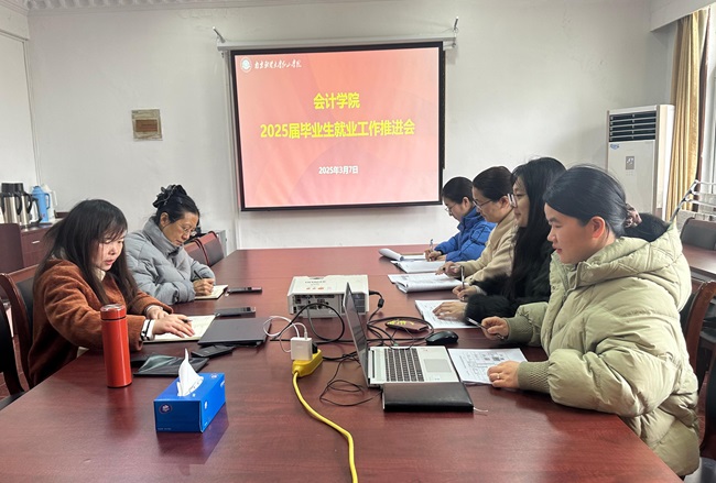 3月7日上午,会计学院在福建路校区教A220会议室和高淳校区智园楼B123会议室集中召开2025届毕业生就业工作推进会。学院党委副书记、副院长、会计学院党总支书记王晨婷,会计学院院长孟翠湖出席会议并讲话。会计学院团总支副书记兼学工秘书吴昊冉及全体毕业班辅导员参加会议。会议由会计学院党总支副书记王颖主持。