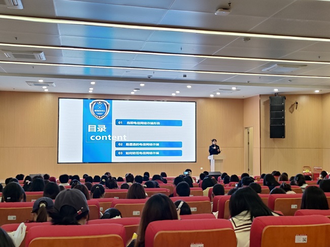 培训会上,徐玲娟警官结合当前电信诈骗典型案例,深入浅出地剖析了“刷单返利”“冒充公检法”“虚假投资理财”等常见诈骗手段的作案特征。通过真实案例解析、诈骗话术拆解等生动形式,直观展现了诈骗分子的作案手法。针对大学生群体特点,徐警官特别提醒了“校园贷”“游戏账号交易”等高发骗局,并以视频的形式展示如何有效识别和拦截可疑来电。徐警官强调,随着诈骗手法不断升级演变,反诈工作需要持续发力、久久为功。