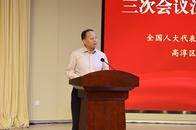4月9日,我院在高淳校区鹿鸣剧院组织召开2025年全国两会精神专题宣讲会,全国人大代表、江苏固城湖青松水产专业合作联社党委书记、理事长、高淳区砖墙镇茅城村党总支书记、村委会主任邢青松带领师生解读两会精神。江苏固城湖青松水产专业合作联社党委副书记胡月华,红山学院党委副书记、副院长王晨婷出席宣讲会,全体中层干部,各党总支、党支部委员,全体学工系统人员,全体思政教师以及学生代表参与宣讲。学院党委副书记、纪委书记高永东主持宣讲会。