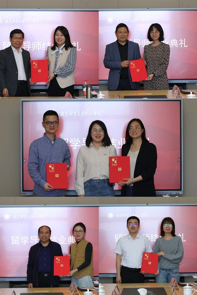 金融税收学院郭文旌、工商管理学院院长张太海、法学院、外国语学院院长李磊、会计学院党总支副书记王颖、国际贸易学院党总支副书记陈玉龙为参训学员颁发留学导师聘书,标志着我院首支留学导师队伍正式组建。