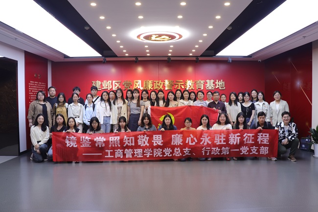 为深入贯彻中央八项规定精神学习教育,持续深化党纪学习教育成效,厚植师生廉洁文化土壤,4月28日下午,工商管理学院党总支联合行政第一党支部组织全体师生党员走进建邺区党风廉政警示教育基地开展“镜鉴常照知敬畏,廉心永驻新征程”主题党日活动。工商管理学院党总支书记、院长张太海,党总支副书记王海萍,党群工作部主管、行政第一党支部组织委员朱昊敏等师生党员共同参与此次活动。