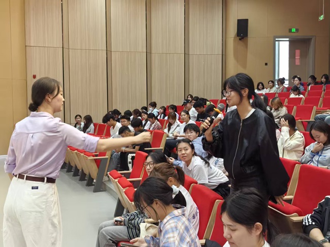 针对这些宿舍常见问题,朱晓洁老师结合具体案例进行细致解读,并通过情景模拟的方式,向新生们传授了实用的沟通技巧。在生动的互动过程中,同学们积极参与,逐步掌握了化解矛盾的具体方法。互动环节,朱老师抛出两个与宿舍生活紧密相关的小问题,台下新生踊跃回应,现场互动氛围热烈。朱老师还为参与互动的同学亲手送上了心理中心定制的文创小奖品,让整个讲座现场充满轻松愉悦的气息。