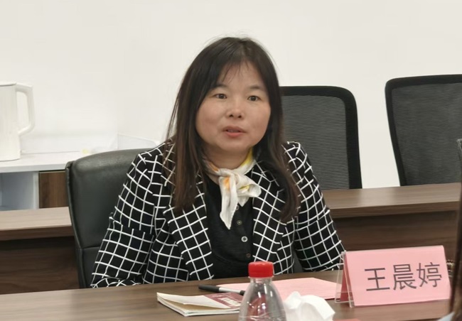 王晨婷副书记讲话。她对上海热风时尚企业发展集团有限公司一行的到来表示热烈欢迎和诚挚感谢,并详细介绍了学院的发展背景、专业设置和毕业生就业规模。她指出,近年来学院持续优化专业建设,推动人才培养质量提升与产业实际需求紧密对接,期待后续能为贵公司输送高水平应用型人才,助力企业高质量发展。