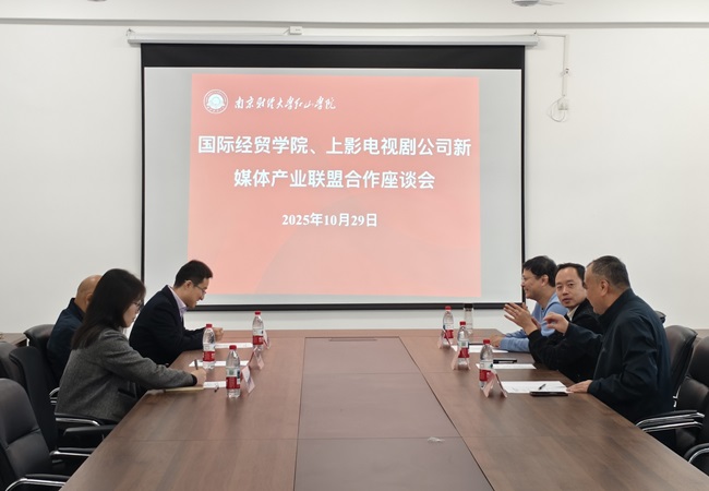 10月29日上午,国际经贸学院与上影集团电视剧新媒体产业联盟举办校企合作座谈会。上影集团电视剧新媒体产业联盟负责人侯福云、投资负责人丁雪华、顾问孙建成,国际经贸学院党总支书记、院长刘志国,教务处副处长薛帅通,学工秘书宋婧参加会议。座谈会由国际经贸学院党总支副书记陈玉龙主持。