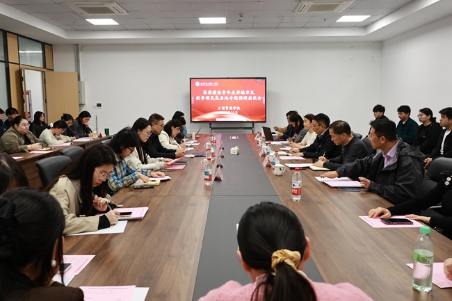 会前,执行院长倪征陪同调研团队参观学院图书馆,详细介绍校园基础设施建设与办学环境。座谈会上,倪征执行院长围绕学院办学理念、学科专业、校地合作及未来发展规划进行详细汇报。他强调,红山学院落户高淳以来,坚持“地方性、应用型、国际化”办学定位,围绕高淳区域发展和产业布局现状,科学调整人才培养方案。如工商管理学院开设了《直播与短视频营销》《文旅产业供应链管理》等特色微专业,同时联合高淳本地多家龙头企业及电商产业园共建“青年就业创业实训基地”,半年时间为50余名学生提供直播电商、乡村数字运营等实战岗位。此外,还积极推动青年教师留淳安居福利政策落地,进一步打通校地人才双向流动通道,全力融入高淳、建功高淳。