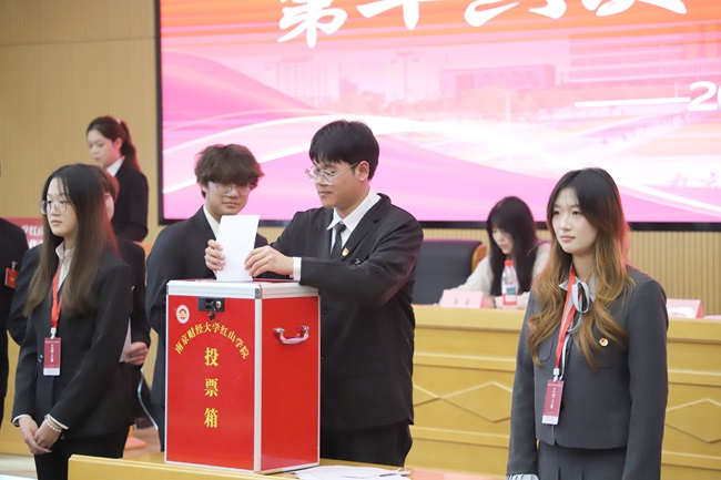 第一次全体会议上,钱绮莲同学作红山学院第十五届学生委员会工作报告。报告回顾工作成果、分析不足,并对下一阶段工作进行规划。史夏如同学宣读《提案工作报告》。第二次全体会议通过《关于南京财经大学红山学院第十五届学生委员会工作报告的决议》,并对新一届学生委员会委员进行选举。第三次全体会议听取选举结果报告,投票选举出新一届学生会主席团成员。