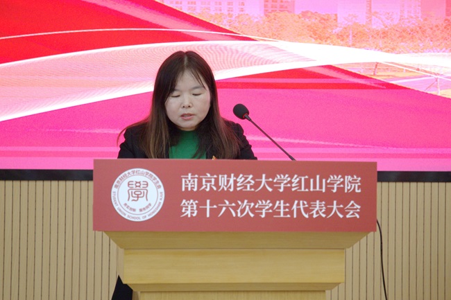 11月16日,我院在高淳校区第一报告厅召开第十六次学生代表大会。学院党委副书记、副院长王晨婷,党委学生工作部部长、学生处处长印文郁,团委书记千继贤,学生会组织秘书长吴蓓,各二级学院团总支书记等出席开幕式,南京财经大学学生会主席团候选人王佩馨及兄弟院校学生会代表应邀参加开幕式。全体学生代表参加大会。