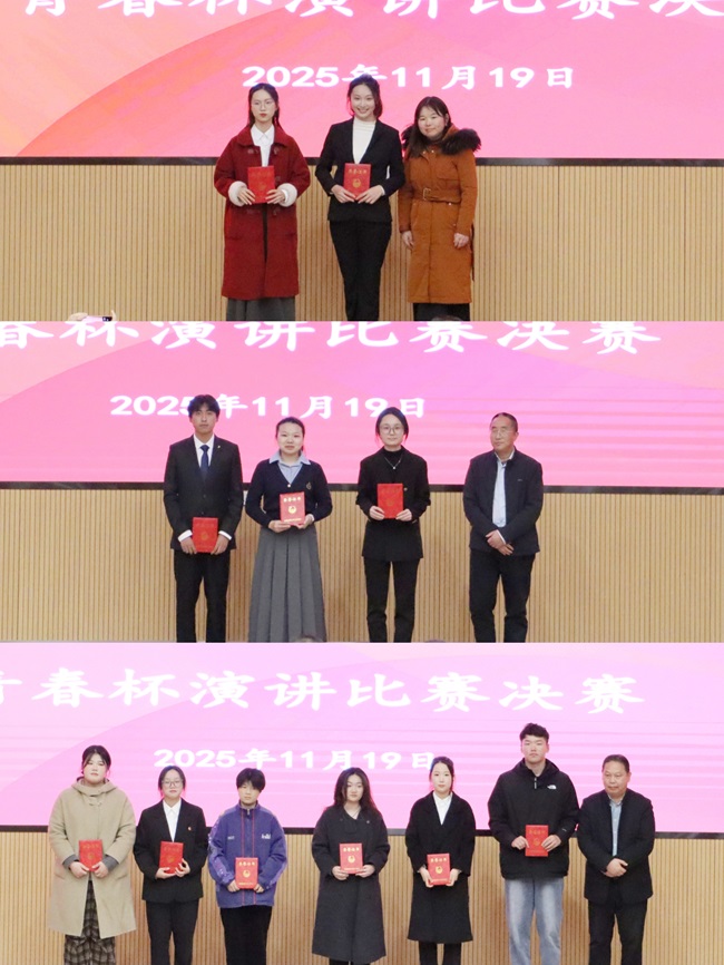 11月19日,第五届“青春杯”主题演讲比赛决赛在高淳校区第一报告厅举行。学院党委副书记、副院长王晨婷,党政办主任、党群工作部部长曹进,党委学生工作部部长、学生处处长印文郁,南京财经大学马克思主义学院教研部主任赵磊,学院团委书记千继贤出席比赛并担任评委。