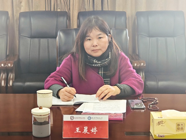 随后,我院党委副书记、副院长王晨婷代表红山学院对南京城市职业学院的热情接待表示衷心感谢,并简要介绍了红山学院的办学特色、学科建设及近年来在教育教学改革、学生培养等方面的成效。她表示,南京城市职业学院在专业优化、产教融合、党建与学生管理等方面积累了丰富经验,此次来访旨在学习借鉴先进做法,进一步提升红山学院办学质量与管理水平。