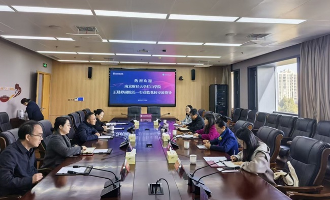 为深化校际合作,推动教育教学、党建工作与学生管理等领域高质量发展,11月25日上午,我院党委副书记、副院长王晨婷带队,会计学院院长孟翠湖,工商管理学院党总支书记、院长张太海、会计学院党总支副书记王颖、工商管理学院党总支副书记王海萍一行5人赴南京城市职业学院(南京开放大学)开展调研交流。南京城市职业学院副校长陈正宇,数字财商学院党总支书记、院长滕静涛,党总支副书记邓莹及相关教研室教师代表李缓缓、肖立刚热情接待并出席座谈。