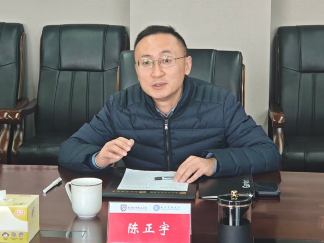 座谈会上,南京城市职业学院副校长陈正宇致辞。陈校长对红山学院一行的到访表示热烈欢迎,并从学校办学定位、学科专业布局、师资队伍建设、产教融合成果等方面详细介绍了南京城市职业学院的基本情况。他表示,两校在人才培养、党建育人等领域有着广阔的合作空间,期待以此次交流为契机,加强互学互鉴,实现共同发展。