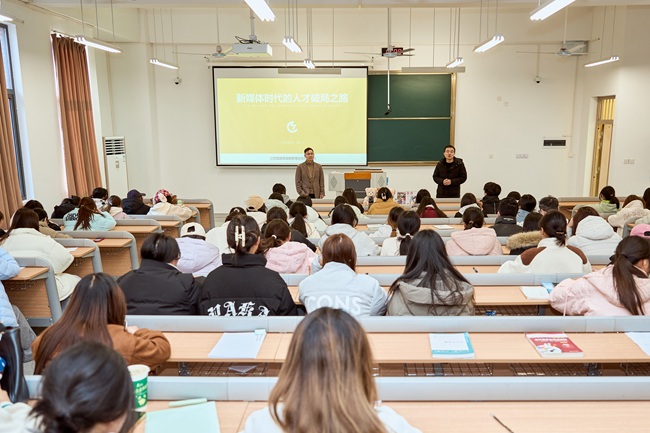 讲座中,郭仁才校友结合自身在新媒体领域的深耕经历与行业实践经验,从新媒体行业发展现状、核心岗位能力要求、职业竞争力构建三个维度展开分享。他指出,当前新媒体行业正处于高速迭代期,内容创作、流量运营、数据分析等核心技能成为职场必备,而跨界思维、创新意识与持续学习能力则是实现职业破局的关键。