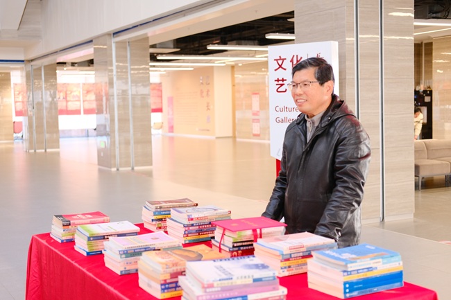 白少布馆长开场讲话。他指出,图书馆作为校园文化传承与知识交流的核心阵地,馆藏资源的丰富度直接关系到师生教学科研质量与校园文化氛围营造。工商管理学院党总支书记、院长张太海本次共捐赠455种559册书籍,这既是工商管理学院对图书馆工作的有力支持,更是校园内部资源共建共享的重要实践,期待以书籍为纽带,让知识在校园内充分流动,为师生搭建更广阔的求知平台。