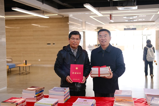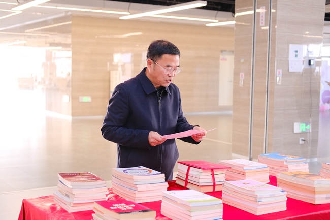 学院戴昕副院长作总结讲话。他表示,张太海院长的捐赠善举传递的不仅是书籍本身,更是一种崇尚知识、乐于分享的价值理念,是一种心系教育、回馈学院的深厚情怀。这份情谊将随着书籍的流通,在一届届学子中传递延续,成为滋养学院文化的重要源泉。希望师生以书为友,在字里行间汲取智慧、坚定信念,让知识成为逐梦路上的坚实力量,这也正是“知识共享启新程”的真谛。