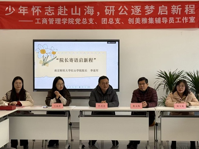 逐梦研途启新程,公考扬帆向未来。为精准锚定2026届学子考研考公备考方向,凝聚青春奋斗力量,明确备考路径方法,12月11日工商管理学院举办2026届考研考公动员大会。南京财经大学红山学院院长、工商管理学院党总支学生第一党支部政治辅导员李连军受邀指导,学院党总支书记、院长张太海,党总支副书记王海萍,团总支书记何玉凤,毕业班辅导员宣冉、经正新出席会议,2026届部分备考学子全程参会。