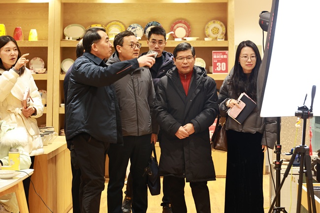 研讨结束后,校企双方共同参观了高淳陶瓷电商营销直播间,实地考察直播流程与运营细节,学院教师代表与企业直播团队就直播选品策略、粉丝互动技巧等实操问题进行现场交流,为后续合作奠定了坚实基础。