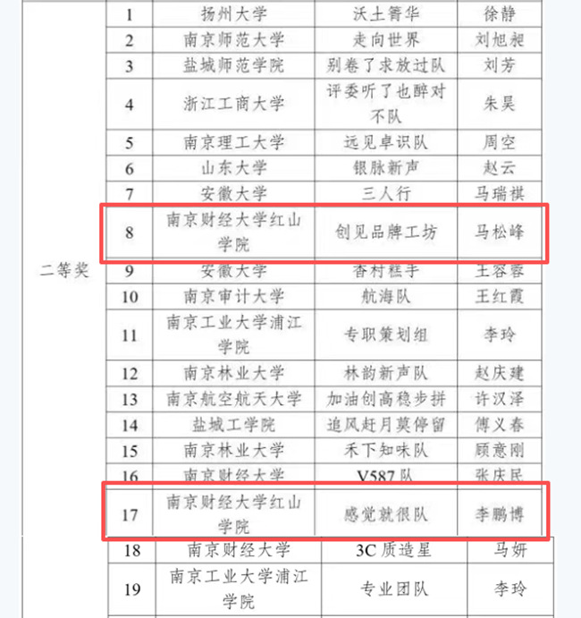 近日,2025首届大学生品牌建设创新大赛获奖团队名单公布。我院共有8支队伍获奖,共斩获一等奖1项、二等奖2项、三等奖5项。