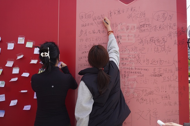 本次活动形式多样、内容丰富,兼具知识性与参与感。在“权益在心 答题护航”互动环节中,同学们通过抽签答题的方式参与“头脑风暴”,在趣味互动中学习维权知识,接受了一次生动实用的普法教育。随后进行的“舌尖红山”校园美食品鉴与推荐环节,更是将现场气氛推向高潮。同学们积极参与,认真写下自己对校园餐饮服务的意见建议,一字一句间,不仅体现了大家对校园生活的关注与热爱,也彰显了新时代大学生以“主人翁”姿态参与校园建设、建言献策的责任意识。贴满建议的展板,成为连接师生情感、汇聚集体智慧的一道亮丽风景。