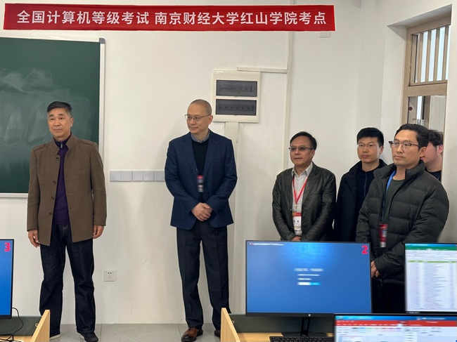 3月28日上午,南京市社会教育考试院副院长欧文剑、成社科科长李元红及代鹏老师一行,莅临我院指导全国计算机等级考试工作,我院副院长杨军、教务处副处长季杏平、薛帅通陪同。