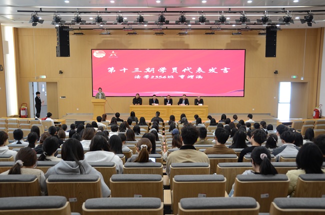 第十四期青马班学员代表于梦涵作表态发言,全体学员将认真学习党的创新理论,用科学理论武装头脑,做有独立判断、有坚定立场的青年骨干,在学思践悟中坚定理想信念,以实际行动展现青年担当。