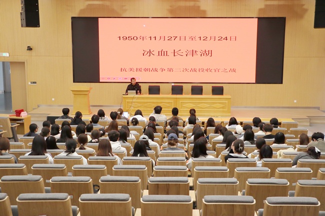 开班典礼结束后,思政教师王增宝为学员作第一讲《冰血长津湖——抗美援朝战争第二次战役收官之战》,围绕长津湖战役的历史背景、作战经过与英雄事迹,回顾志愿军将士在极寒严酷环境下凭借钢铁意志与英勇无畏的战斗精神,完成抗美援朝战争第二次战役收官之战的壮烈征程,引导大家铭记历史、缅怀先烈,传承伟大抗美援朝精神。