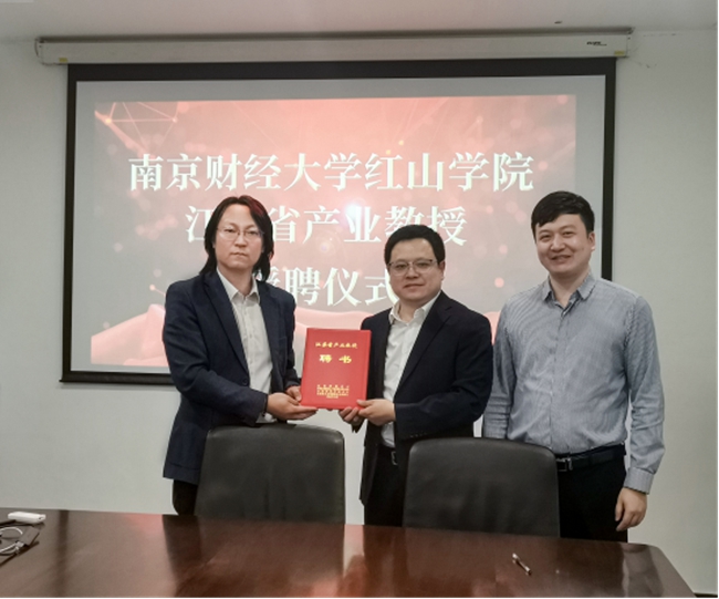 随后,我院与全拓数据举行了南京财经大学红山学院江苏省产业教授授聘仪式。授聘仪式上,王晓庆副院长、钱城江教授向崔永庆颁发了江苏省产业教授聘任证书,并表示热烈的欢迎和衷心的感谢。