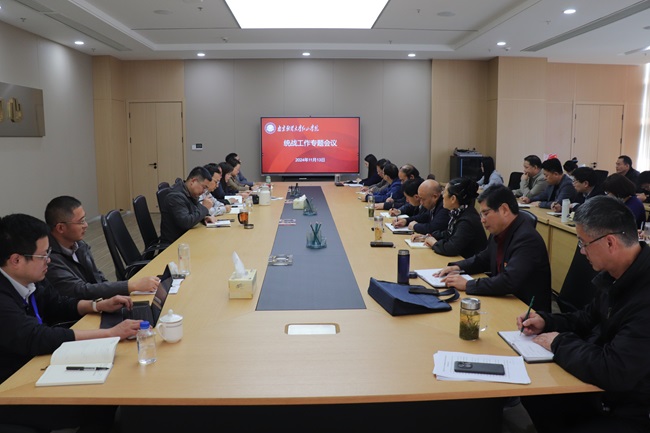 为深入学习贯彻党的二十大和二十届三中全会精神,推动习近平总书记关于做好新时代党的统一战线工作重要思想落地生根,11月13日,我院在高淳校区第一会议室召开统战工作专题会议。学院全体院领导出席会议,各系部负责人、团委书记、分工会主席、党总支书记(副书记)参加会议。会议由党委副书记、副院长王晨婷主持。