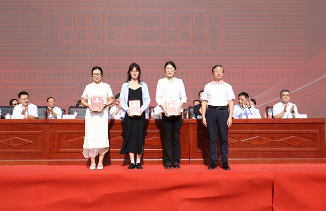 黄步龙副校长为江苏省第三届思政课程教学展示竞赛、第三届江苏省高校艺术教师基本功大赛获奖教师颁奖。