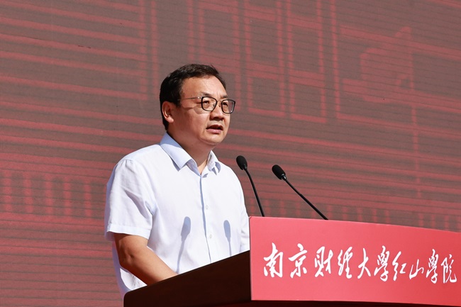 金风送爽,共赴秋实。9月19日上午,我院2025级新生开学典礼在田径场隆重举行。南京财经大学党委书记张利民,新华集团总裁张明,南京财经大学党委常委、副校长黄步龙,南京财经大学党委常委、副校长李煜出席大会。南京财经大学相关部门负责人以及学院全体院领导和有关老师、全体2025级新生参加开学典礼。开学典礼由学院党委书记孙彬主持。