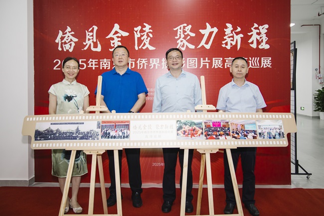 随后,南京市侨联党组成员、副主席许嘉明,高淳区政府副区长魏双林,红山学院党委书记孙彬,高淳区侨联主席唐爱梅共同为2025年南京市侨界摄影图片展揭牌。