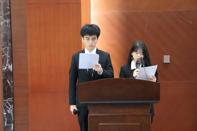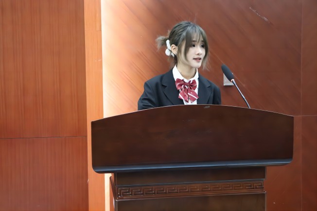 4月16日上午10点,决赛于四教报告厅成功隆重举行,邀请到文法系思政教师高雪荣、法律与交流协会社长戴佳琪、工商系学生会主席钟灿森、国贸系学生会主席崔雨晴担任评委,参赛选手在主持人的介绍下依次登场进行展示。