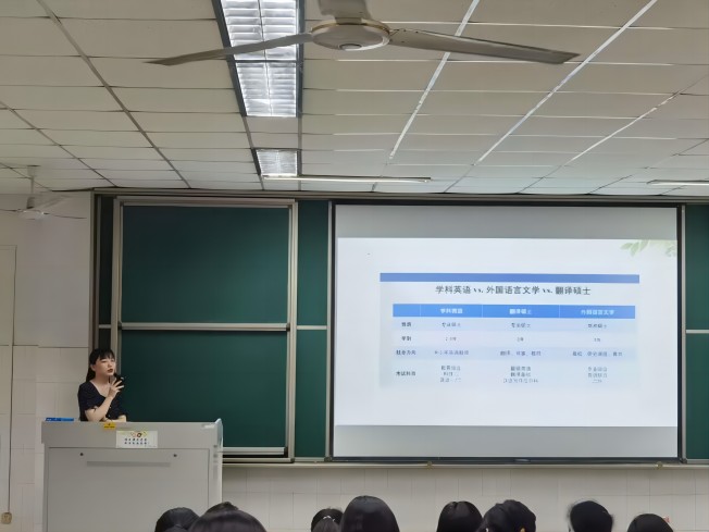 9月12日,文法系邀请了法学教师罗兵和教务处教师许慧敏两位优秀校友为2023级新生作职业生涯教育专题讲座。许慧敏老师分享了自己在文法系英语专业就读的经历,重点介绍了英语专业考研的相关注意事项,鼓励新生夯实专业基础,逐步靠近职业目标、培育职业素养。罗兵老师从法学就业前景的角度出发,建议新生以自身发展需求与职业目标为出发点,结合自身素质与能力选择适合自己的职业路径。