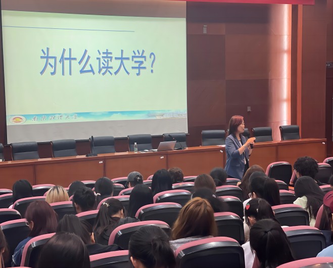 甘诺老师“为什么读大学”作为问题导入,通过发问的方式引导新生迅速进入话题,拉近了与同学们的距离,展开亲切交流。结合自身和周围人的例子,生动诠释了做出合理规划的重要性,帮助新生树立尽早规划人生的意识。
