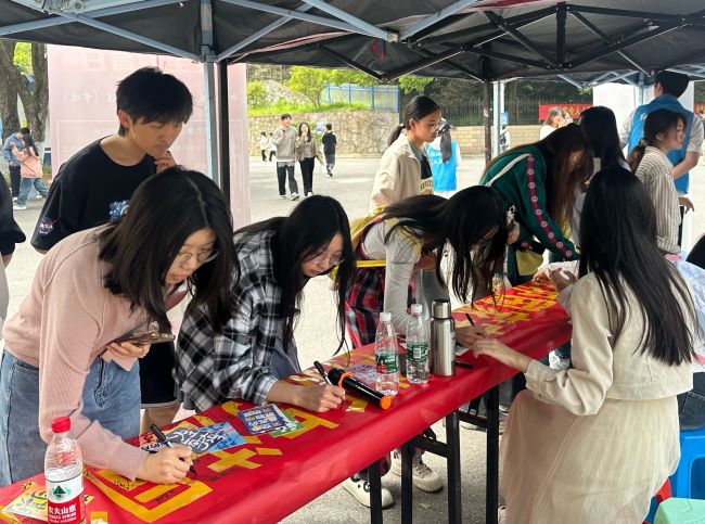 活动现场,文法系青年志愿者通过布设宣传展牌、宣讲警示案例、宣读法律条文等多种形式向现场师生普及国家安全知识,用一个个真实的案例帮助大家了解国家安全现状,识破危害国家安全隐患的伪装。路过的师生纷纷驻足停留聆听宣讲,并踊跃地在守护国家安全横幅上签名承诺,以示决心。