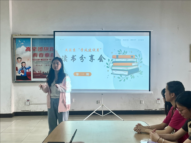 立身以立学为先,立学以读书为本。为营造良好的读书习惯和学习氛围,助力学生拓宽阅读视野、提升学术素养、丰富精神世界,在书香的浸润、思想的碰撞中厚植法治信仰,文法系于5月16日下午在桥头校区“一站式”学生社区开展了以书润心,与法同行读书分享会本次活动由文法系辅导员高涵老师主持,法学专任教师殳勉、杨亚婕受邀出席,法学专业学生积极参与