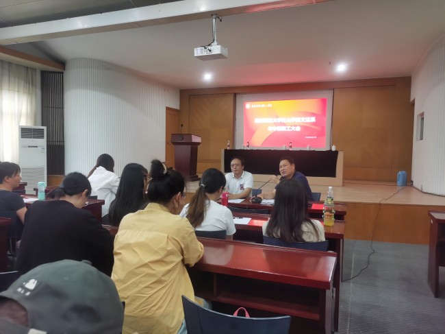 6月20日下午,我系在桥头校区沐德苑二楼报告厅召开系部工作会议。学院副院长杨军出席会议,文法系全体教职工参加会议。会议由文法系主任李磊主持。