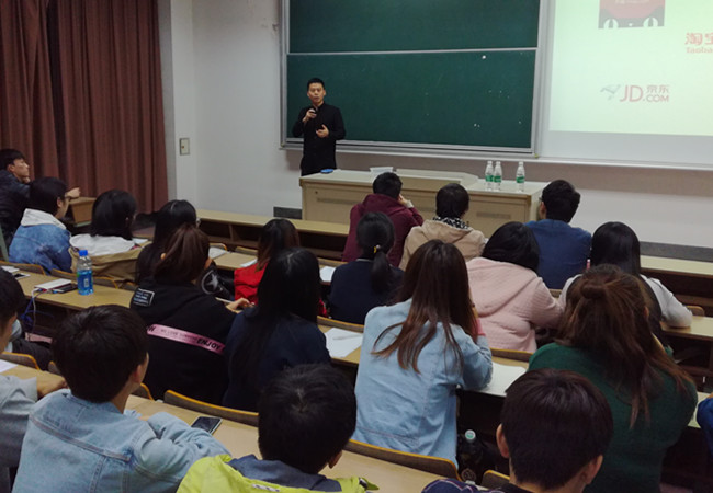 南京名轩网络科技有限公司是一家行业知名的网络销售企业,是安徽省十大电商企业之一。谷万水总经理讲授了电子商务行业的发展历程、创办电商企业的创业感悟和电子商务专业学生的就业前景等。他指出:电子商务行业目前正在经历着向新型电商的发展变化。所谓新型电商,即指实体企业通过网络平台在和供货企业和网络购物群体的互动中,融通营销链和供应链,营造多场景多渠道电商交易,实现成交业务量剧增的新型电商经营行为。在过去传统电商发展过程中,主体是互联网公司平台,交易一般局限在店铺成交,供应链和营销连相分离;而暂露端倪的新型电商交易的主体将转向实体企业,交易的途径将是多场景多渠道,将形成由用户驱动的供应链和营销链相互融合,实现营销量剧增。关于创业感悟,他指出,创业要脚踏实地,当我们实力还不够充分时,一般宜先从模仿起步,经过一段实力的积累后,再注重创新,超过别人;电商企业的产品选择,要发挥自己的优势,选择自己能做起来的产品来做,勿求点石成金。关于电子商务专业学生的就业前景,他引用近年来的数据指出,2016年我国电子商务交易规模达到20万亿元人民币;2015年电子商务服务企业直接从业人员规模达到265万,由电子商务间接带动的就业人数,已超过2000万,电子商务和跨境电商的迅猛发展,会给电子商务专业毕业生带来广阔的就业机遇。