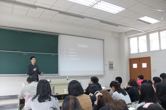 王可光总监于大学计算机专业毕业后10余年来,一直从事技术研发和团队管理等方面工作, 2014年与人合伙联合创办了珠海市蜜瓜科技有限公司和澳门新鲜生活科技有限公司两家企业,依托国内技术力量,从事澳门市场智慧生活等方面产品的研发和推广业务,在就业到创业的道路上取得了较大的成功,并积累了有价值的经验。他结合自己的学习、工作及创业经历,以及当前移动互联网浪潮下的服务行业的发展前景,指出:在大学阶段,同学们应以专业课的学习为主,夯实专业基础,同时兼学别样,广泛涉猎,拓展知识面,做到一专多能;大三、大四时,要注重社会实践,努力增加社会阅历,为今后的就业、创业做准备。大学毕业选择工作时,应结合自身的专业特长和兴趣爱好,优先考虑有长远发展潜力的工作。在工作中积累必要的资源,善于向周边的同事学习,取长补短。最后,他还就工作中的人际关系处理、跳槽方面的思考、创业中需要权衡的几个纬度等个人感悟做了分享。