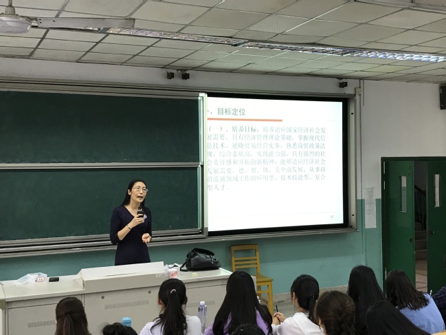 贸易经济专业负责人李平华副教授向学生介绍了本专业的发展历程、专业师资队伍的结构和科研能力,并对本专业在各发展阶段的特色和取得的成就进行了概述,加强了学生对专业的理解和认识。当前,贸易经济的专业特色主要体现在:一是适应市场需求,分类培养应用型商贸流通人才;二是重视实践实验教学,注重实践技能和创新思维训练,以三类实践和三个课堂作为支撑;三是以“三化融合”促进教学水平提升,以国际化、信息化提高经贸人才培养质量。