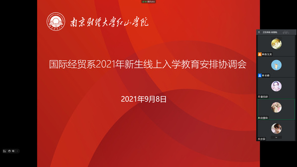 9月8日下午,我院国际经贸系通过“腾讯会议”在线召开了国际经贸系2021年新生线上入学教育安排协调会,国际经贸系行政人员、大一年级辅导员和班主任参加,会议由系主任助理陈玉龙主持。