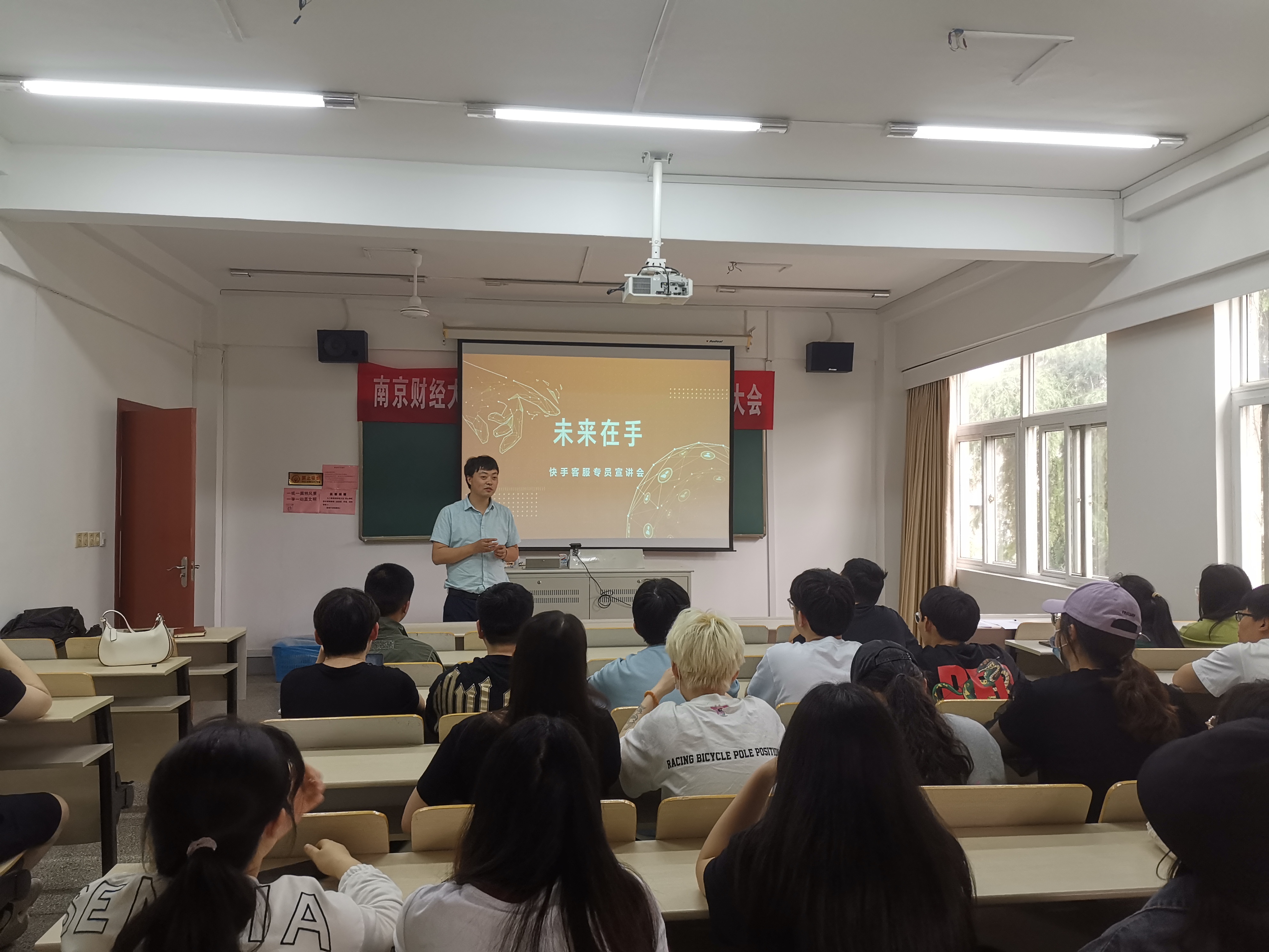 薛宇先生以“未来在手”为题,首先向学生介绍了公司背景、招聘岗位、薪资福利、晋升渠道等信息,鼓励有意向在电商行业发展的同学积极投递简历、参与校招活动。此外,根据个人在互联网行业丰富的招聘经验,他也分享了很多关于简历撰写、面试指导等求职方面的技巧。针对同学们提出的各类问题,他都一一给予了回复,并建议学生还是要通过职场历练,有针对性地调整就业方向,才能找到合适的岗位。