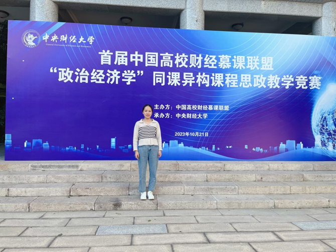 2023年10月21日,由中国高校财经慕课联盟主办的首届中国高校财经慕课联盟“政治经济学”同课异构课程思政教学竞赛在中央财经大学举行。来自全国财经类院校31位教师经所在学校推荐参加本次竞赛,经过复赛和专家评审,我系教师蒋敏荣获了三等奖的好成绩。