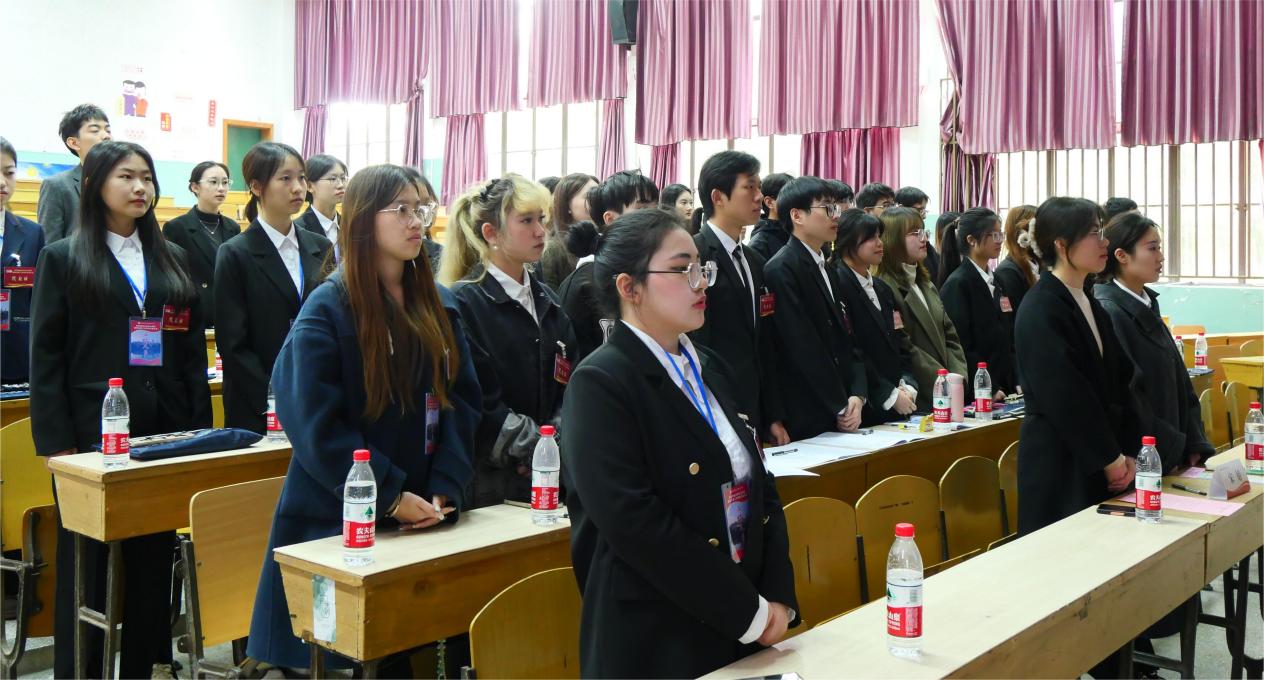 20231122日,南京财经大学红山学院国际经贸系第二次学生代表大会于我校桥头校区三教报告厅顺利召开。国际经贸系党总支副书记陈玉龙,系团总支书记宋婧,系辅导员老师申辉,院第二十届学生会分管主席左锦川同学应邀参加开幕式。本次大会由系学生会尤学峰同学主持。全系40位学生代表参加大会。