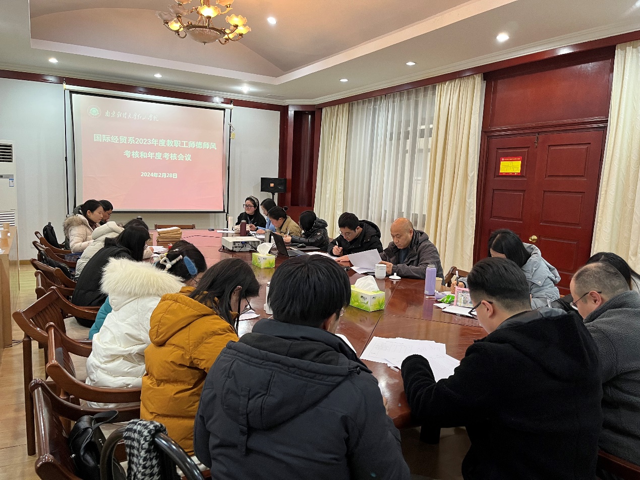 为全面总结2023年工作,正确评价我系教职工工作实绩,营造锐意进取、奋发有为、担当实干的工作氛围,2月28日下午,我系在桥头校区沐德苑第一会议室举行了2023年度述职考核工作会议,系全体教师、行政人员参会,会议由系党总支书记、系主任刘志国主持。