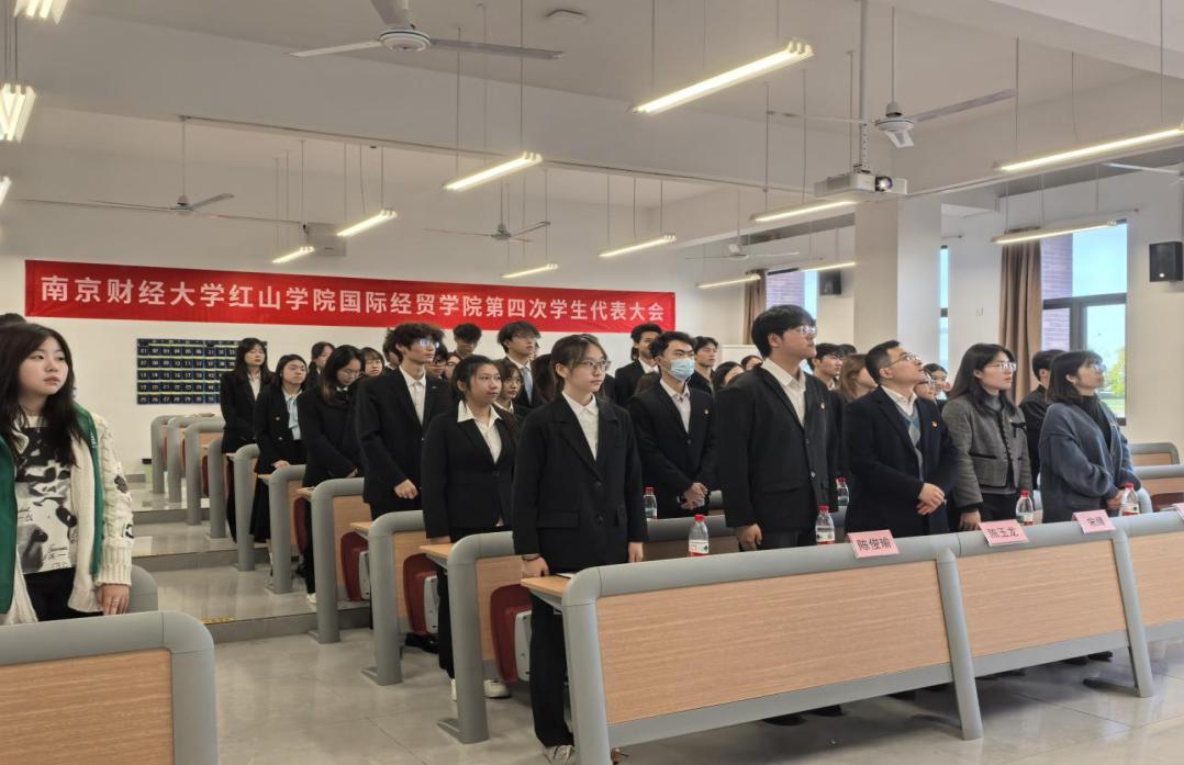 全体会议环节,41名学生代表认真听取并审议了上一届学生会主席谢雨平同学的工作报告,并围绕工作报告、学院发展、学生权益等关键议题展开热烈讨论,积极建言献策,提出诸多富有建设性的意见。经认真审议、表决,大会一致通过了《南京财经大学红山学院国际经贸学院学生会章程(草案)》与《国际经贸学院第四次学生代表大会提案工作报告》 ;并选举产生了新一届学生会主席、学生委员会委员。