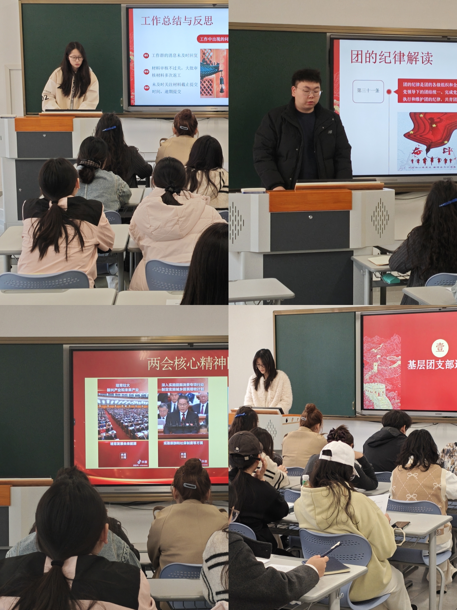 活动伊始,党总支副书记陈玉龙充分肯定了过去一年团总支及各团支部的工作成效。他围绕新学期团学工作提出三点要求:一是筑牢思想根基,把学习贯彻两会精神与理论武装结合起来,引导团员青年坚定理想信念;二是强化组织效能,规范“三会两制一课”制度,提升基层团支部凝聚力;三是践行责任担当,鼓励团干部服务同学、投身实践,积极展现青年风采。