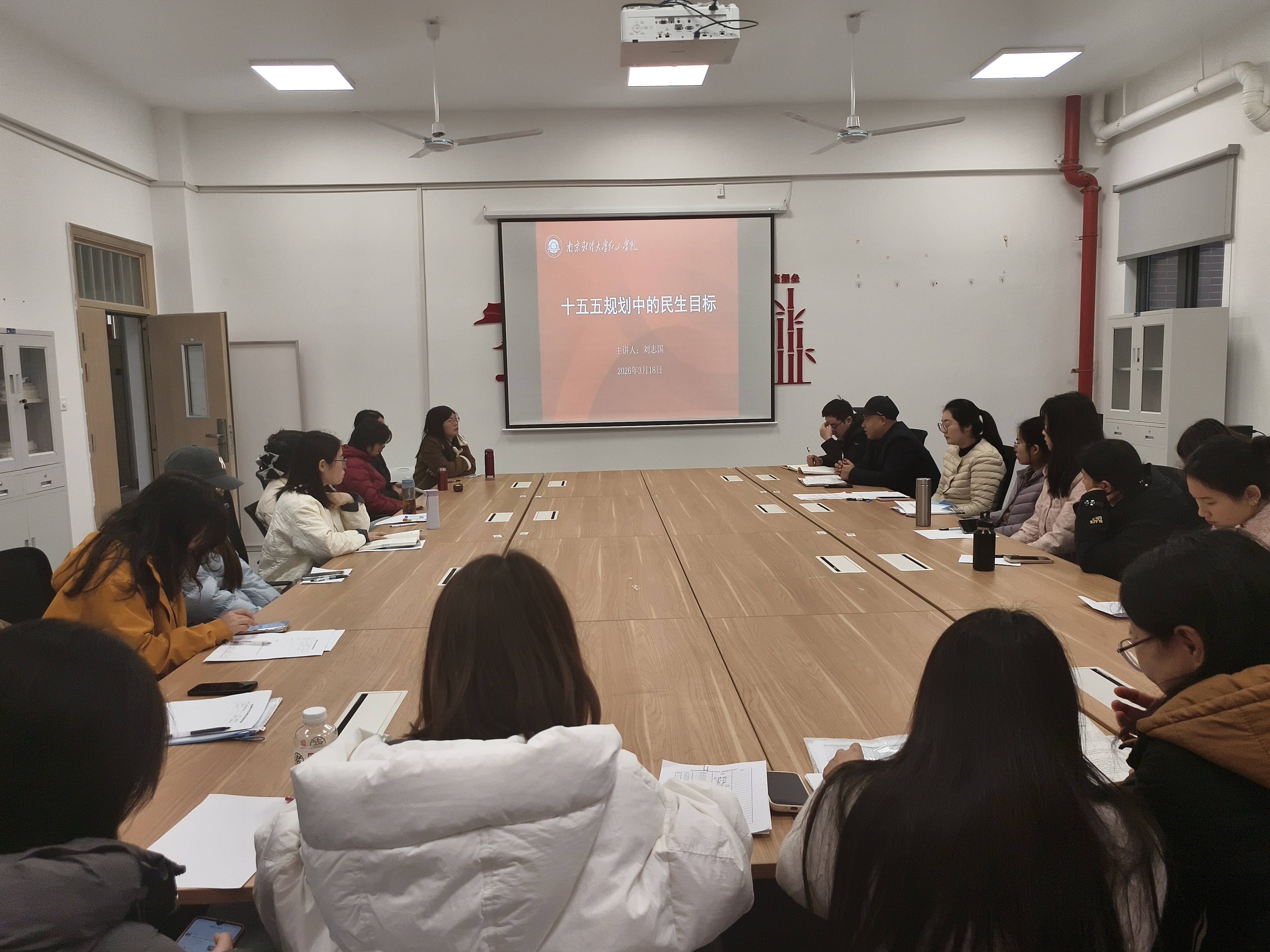 为深入贯彻落实党建引领事业发展的工作理念,推动党建工作与教育教学、科研创新深度融合,3月18日,我院在智圆楼221党建活动室举办“‘十五五’规划中的民生目标”专题微党课。学院党总支书记、院长刘志国主讲,全体师生党员参加。