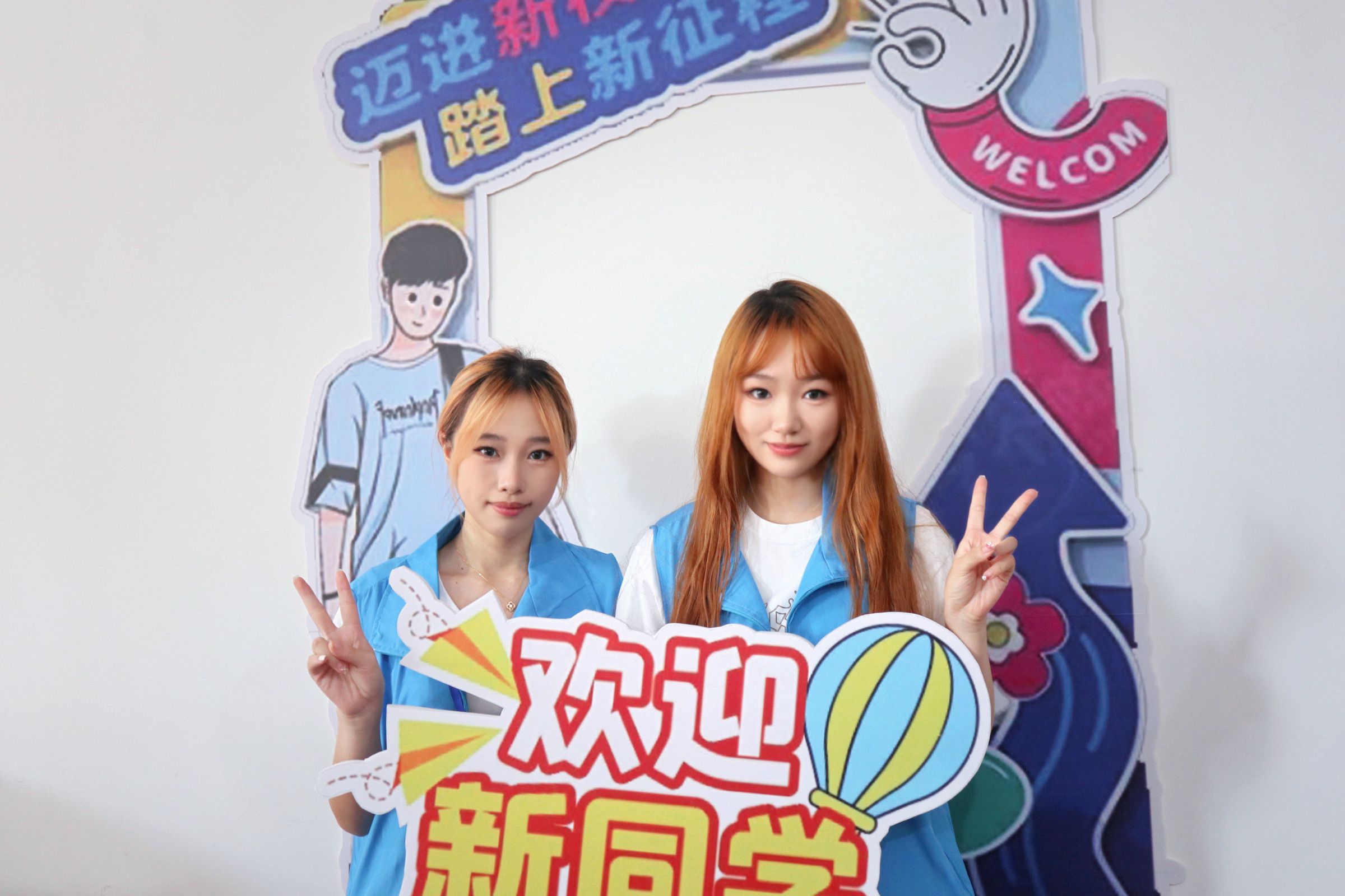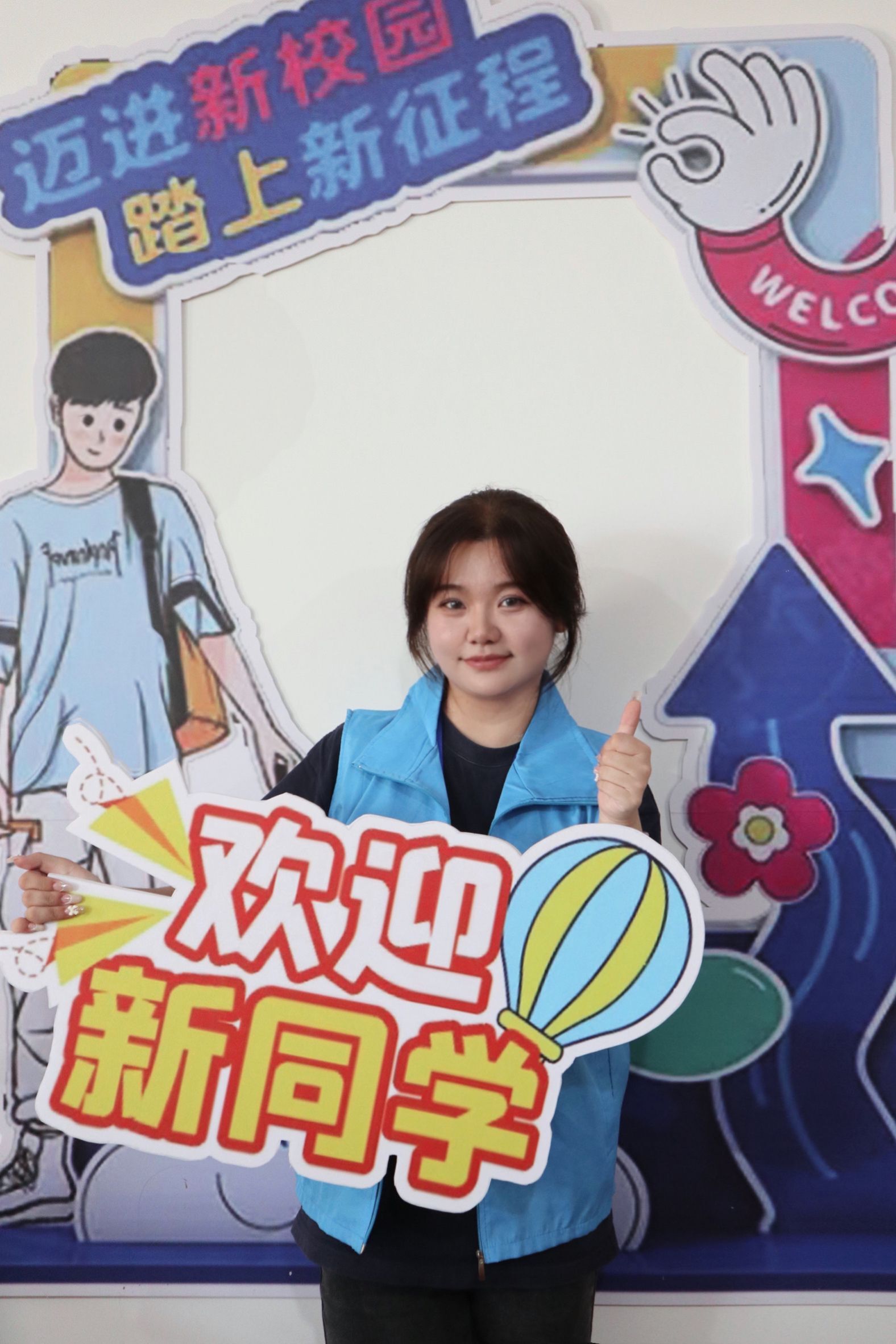 志愿者以饱满的精神状态迎接新同学