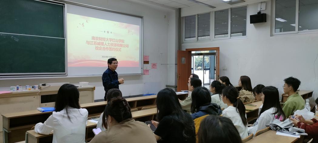 为加深我院师生对于江苏威缇人力资源有限公司的了解,王霞总经理聚焦公司业务、公司战略规划、服务代表性客户、公司文化与团建建设、公司优势等方面对公司进行简单介绍,并与我院师生围绕学习、就业相关问题讨论交流。王霞总经理表示欢迎我院毕业季的同学加入到公司的团队中来,为公司注入新活力。